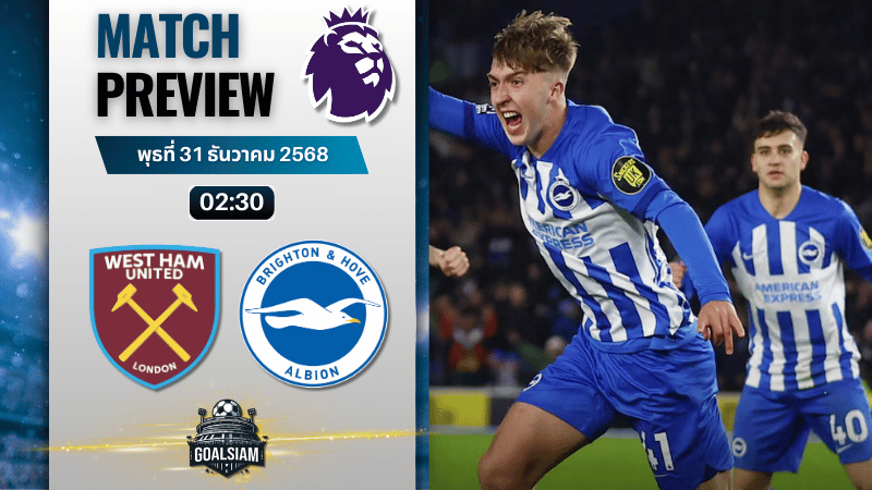 คืนนี้เวทีพรีเมียร์ลีกมีของแรงให้ตามเชียร์ เมื่อเวสต์แฮม ยูไนเต็ด เปิดรังลอนดอน สเตเดี้ยม ต้อนรับการมาเยือนของไบรท์ตัน แอนด์ โฮฟ อัลเบี้ยน เกมนี้ไม่ใช่แค่บอลกลางตารางธรรมดา แต่เป็นแมตช์ที่มีเดิมพันทั้งเรื่องศักดิ์ศรีและอนาคตของซีซั่นฝั่งขุนค้อน เพราะผลงาน 17 นัดในลีก เก็บได้แค่ 3 ชนะ 4 เสมอ 10 แพ้ เฉลี่ย 0.76 แต้มต่อเกม ฟอร์มแบบนี้หลุดไปแพ้เพิ่มอีกนิดเดียว หล่นไปอยู่โซนหนีตายเต็มตัวได้ง่ายๆ ส่วนไบรท์ตันแม้จะไม่ได้อยู่ในโหมดพุ่งแรงเหมือนช่วงพีก แต่ก็ยังทรงดีกว่าชัดเจน ชนะ 6 เสมอ 6 แพ้ 5 มีค่าเฉลี่ย 1.41 แต้มต่อเกม แถมยังกดประตูรวมทุกถ้วยไปแล้ว 37 ลูก เกมรุกถือว่ายังไหลลื่นใช้ได้
