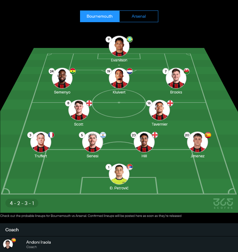 คาดการณ์ 11 ตัวจริงบอร์นมัธ (4-2-3-1) พร้อมเรตความเด่นนักเตะแบบคร่าวๆ