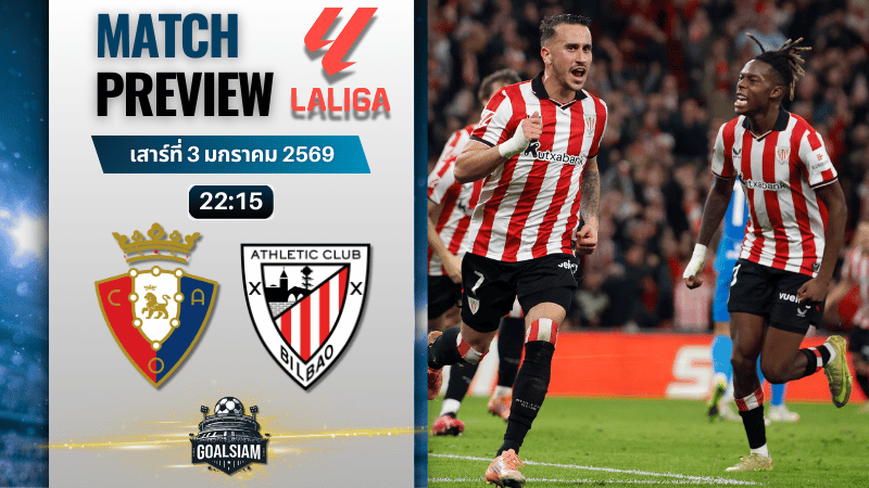 เมื่อเอาฟอร์มล่าสุด สภาพจิตใจ และแรงกดดันมาชั่งน้ำหนัก GOALSIAM มองว่าโอซาซูน่าดูสดกว่า เล่นง่ายกว่า เพราะเสมอก็ถือว่าตามหน้าเสื่อไม่เสียหาย ขณะที่บิลเบาถูกคาดหวังให้บุกมาเก็บสามแต้ม ทั้งที่สภาพทีมไม่สมบูรณ์ ทำให้มีโอกาสเสียสมาธิสูง ถ้าเกมไหลไปตามรูปเดิมที่เคยเจอกัน โอซาซูน่ามีลุ้นเบียดชนะด้วยสกอร์เฉือนหวิวอีกครั้ง