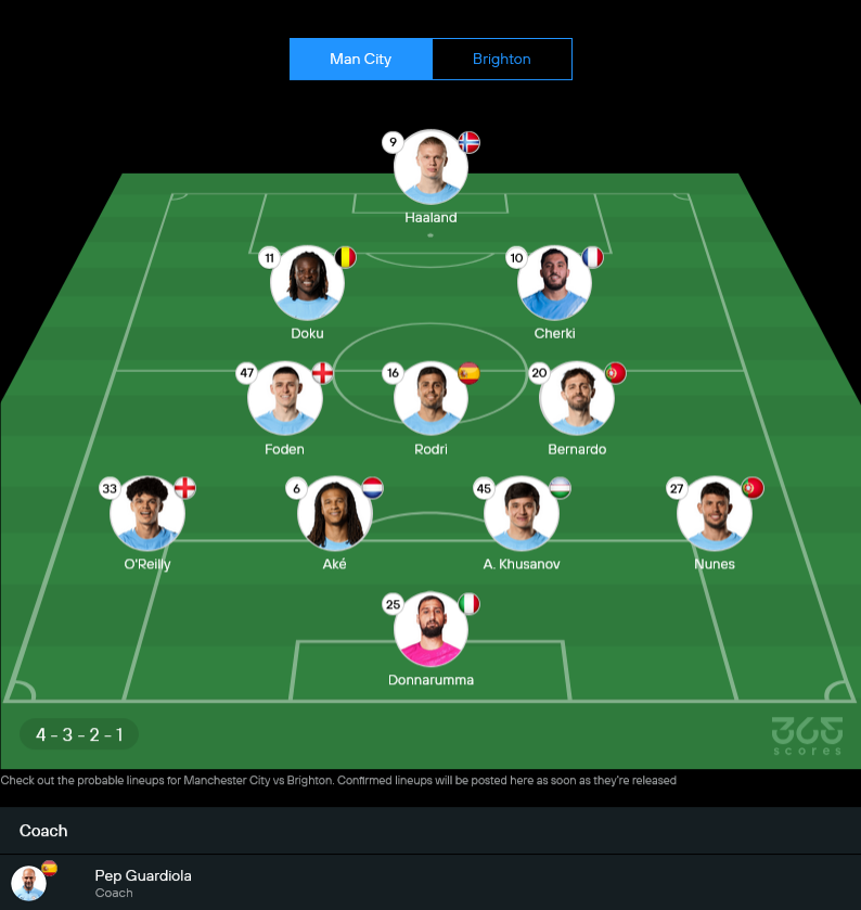 | 10/11/2024 | พรีเมียร์ลีก | ไบรท์ตัน 2-1 แมนเชสเตอร์ ซิตี้ |