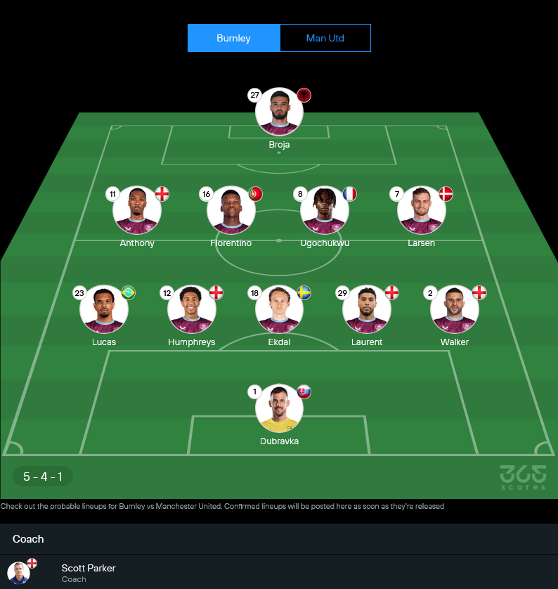 สก็อตต์ พาร์คเกอร์มีโอกาสจัดระบบ 5-4-1 เน้นแนวรับแน่นไว้ก่อน แล้วค่อยให้ Broja ยืนหน้าเป้าไล่ล่าประตูจากจังหวะสวนกลับ โดยมี Anthony กับ Larsen ช่วยทำเกมด้านข้าง