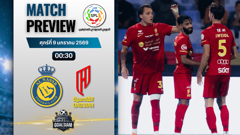 คู่นี้บอกเลยว่าโคตรเดือด เพราะเป็นการรีแมตช์ของทีมที่เพิ่งเจอกันแล้วฝั่งทีมเยือนบอมบ์ใส่จนเจ้าบ้านคอตกกลับบ้านมาแล้วรอบหนึ่ง สถานการณ์ตอนนี้เจ้าถิ่นอย่าง อัล นาสเซอร์ รั้งอันดับ 2 ของตาราง กำลังกดดันเต็มๆ หลังสะดุดจนเสียจ่าฝูงไป เกมนี้เลยเหมือนแมตช์ประกาศศักดาในบ้าน ถ้าไม่ชนะมีโอกาสโดนแต้มทิ้งห่างแน่นอน ส่วน อัล กาดซิยาห์ ฟอร์มกำลังติดลมบน ขยับขึ้นมาอยู่ที่ 5 และมั่นใจสุดๆ ว่าบุกมาลุ้นแต้มได้อีกหน