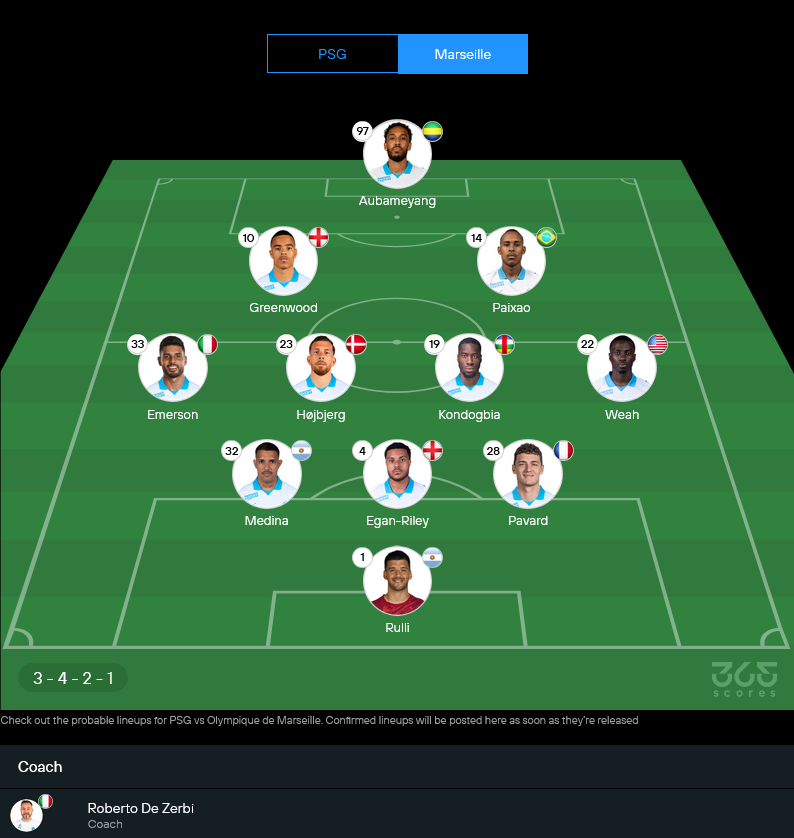 คาดการณ์ 11 ตัวจริงมาร์กเซย (3-4-2-1)
