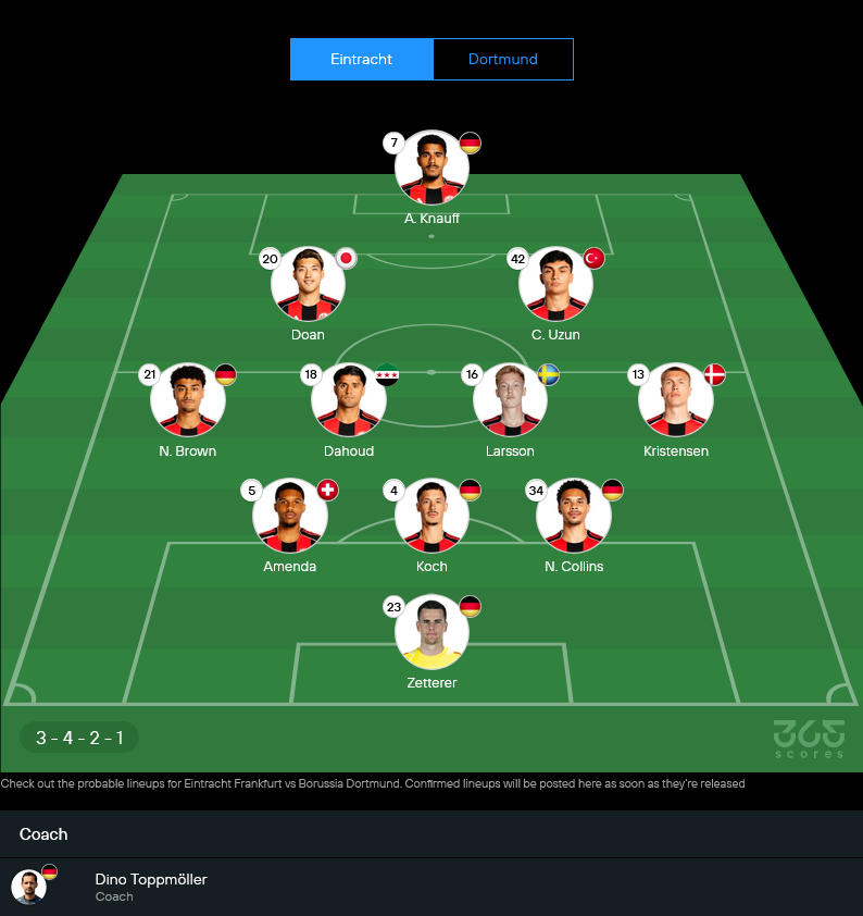 สกอร์ที่คาด: แฟร้งค์เฟิร์ต 1 – 3 ดอร์ทมุนด์