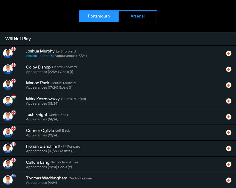 คาดการณ์ 11 ตัวจริง พอร์ทสมัธ (4-2-3-1)