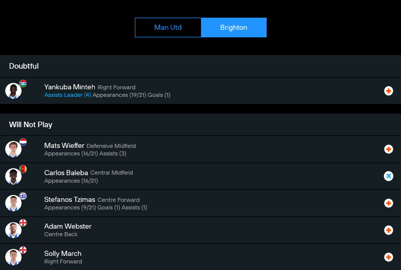 24/08/2024พรีเมียร์ลีกไบรท์ตัน 2–1 แมนเชสเตอร์ ยูไนเต็ด