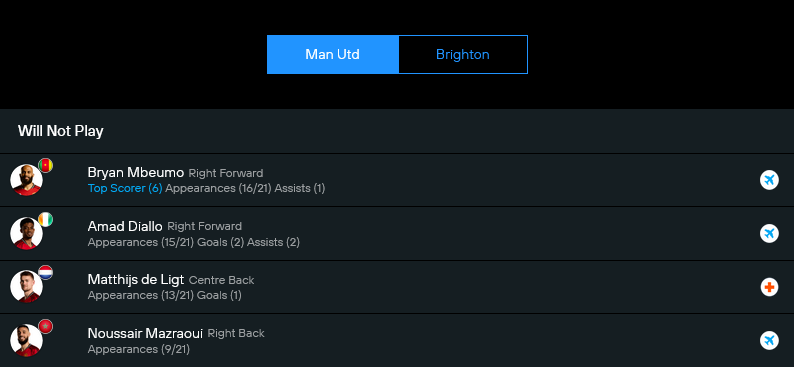 16/09/2023พรีเมียร์ลีกแมนเชสเตอร์ ยูไนเต็ด 1–3 ไบรท์ตัน