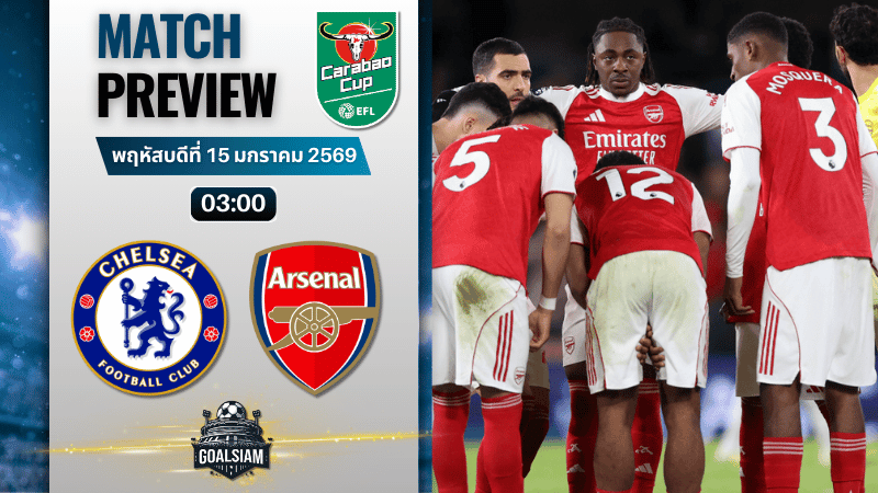 คู่นี้บอกเลยว่าดุเดือดตั้งแต่เห็นชื่อทีมแล้ว คืนวันพฤหัสกลางสัปดาห์ แฟนบอลเตรียมปลุกตัวเองขึ้นมาดูได้เลย เพราะฟุตบอลถ้วย คาราบาว คัพ รอบนี้ได้คู่เอกอย่าง เชลซี เปิดบ้านรับการมาเยือนของคู่อริร่วมเมืองอย่าง อาร์เซนอล เกมเดียวที่เดิมพันไม่ใช่แค่เรื่องเข้ารอบ แต่ยังเป็นศักดิ์ศรีของลอนดอนดาร์บี้แบบเต็มๆ ใครพลาดมีสิทธิโดนแฟนบอลล้อไปทั้งฤดูกาล