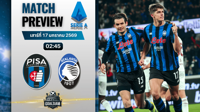 ศึกโหดเซเรีย อา ปิซ่าดวลอตาลันต้า บอลบุกกระแทกไส้ ลุ้นกินเต็มไปกับ GOALSIAM