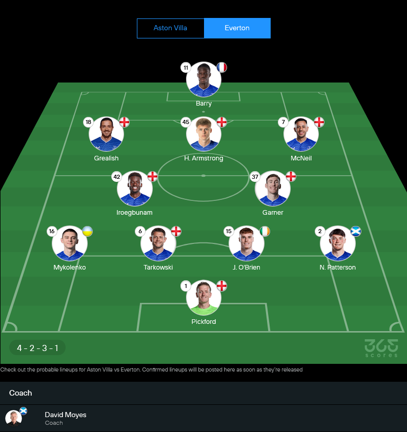 เอฟเวอร์ตัน (4-2-3-1) คาดการณ์ 11 ตัวจริงพร้อมเรตคะแนนโดยคร่าวๆ