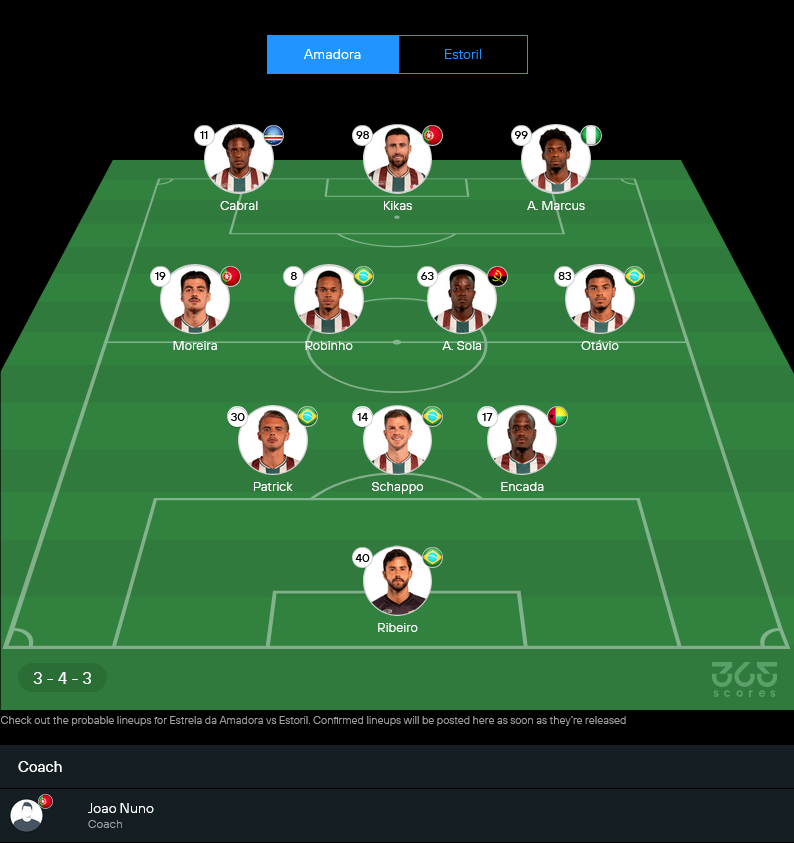 คาดการณ์ 11 ตัวจริง เอสโตริล (เรตคะแนนประเมินโดย GOALSIAM)