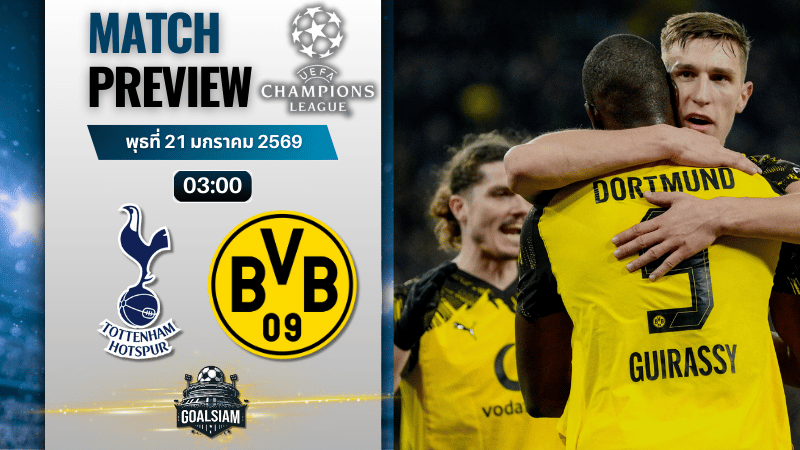 มองภาพรวมทุกอย่าง ทั้งฟอร์มล่าสุด สภาพทีม และสไตล์การเล่น GOALSIAM ต้องยอมรับว่า ดอร์ทมุนด์ดูพร้อมกว่า สเปอร์สเยอะ สเปอร์สกำลังอยู่ในช่วงเสียความมั่นใจ โดนยิงง่าย เกมรับเปลี่ยนตัวไปมาจนขาดความนิ่ง แถมมีเสียงแฟนบอลเริ่มโวย หน้างานกดดันสุดๆ
