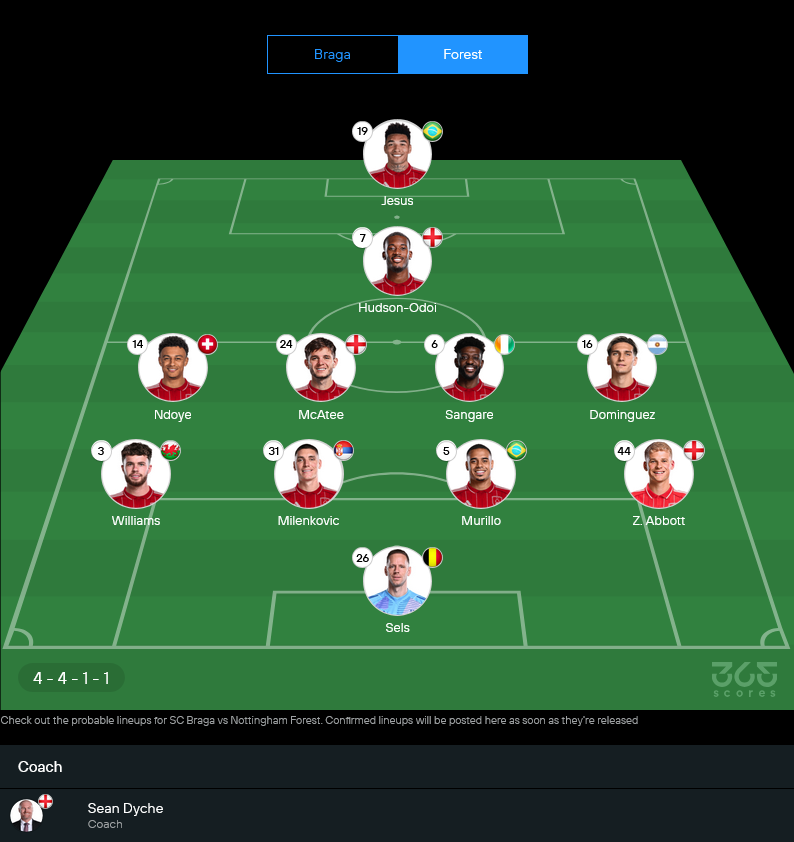 ฝั่งฟอเรสต์ของ ฌอน ไดช์ ชื่อเสียงเรื่องเกมรับแน่นอยู่แล้ว แต่ก่อนเกมนี้ก็ยังมีปัญหาตัวผู้เล่นให้ต้องคิดหนักเหมือนกัน คริส วู้ด หัวหอกตัวหลักเจ็บยาวชัวร์ ส่วน จอห์น วิกตอร์ สภาพไม่เต็มร้อยต้องเช็คอาการต่อ อีกทั้งจากข้อมูลล่าสุดยังมี ไทโว โอวอนยี กับ โอมาริ ฮัตชินสัน ที่ระบุว่า “ไม่พร้อมลงสนาม” เพิ่มคำถามในแนวรุกเข้าไปอีก