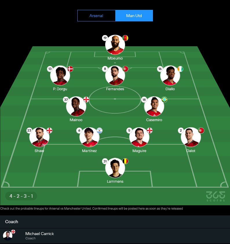 ฝั่งแมนฯยูของไมเคิ่ล คาร์ริค มีข่าวไม่ดีเหมือนกัน เมื่อ มัตไธย์ส เดอ ลิกต์ ยังเดี้ยงยาว ขณะที่ โจชัว เซิร์คซี กับ โทบี้ คอลลเยอร์ อยู่ในโหมดต้องทดสอบความฟิต แต่โครงหลักคนอื่นๆ ยังพร้อมบู๊