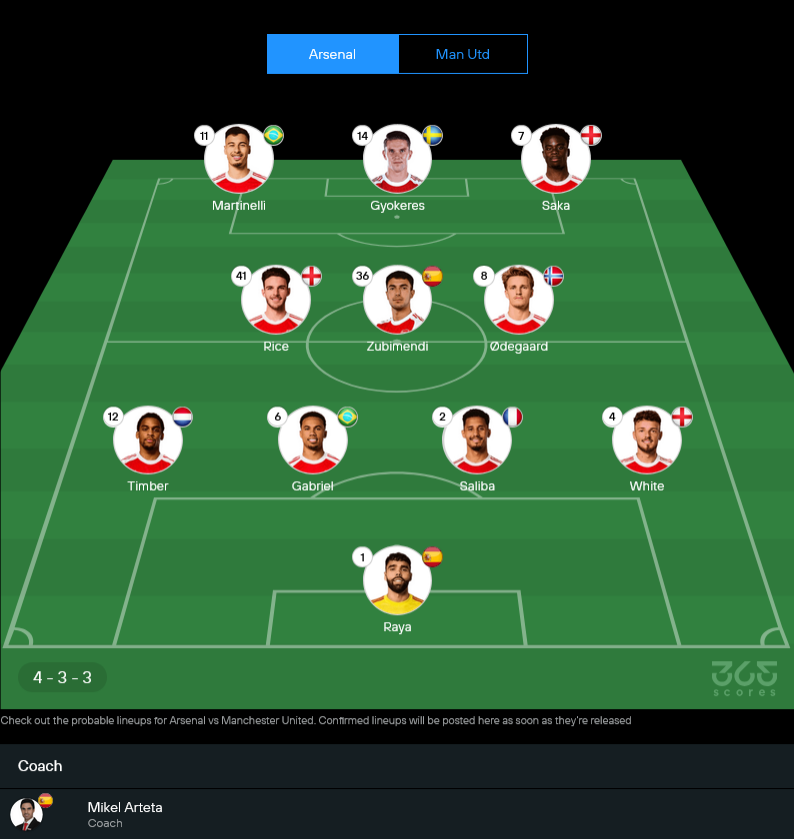 จากไลน์อัพล่าสุดที่โผล่บนหน้าจอคาดว่าปืนโตจะจัด 4-3-3 เล่นเกมรุกเต็มรูปแบบ