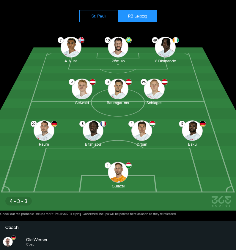 | 23/09/2024 | บุนเดสลีก้า | St. Pauli 0 – 0 RB Leipzig |