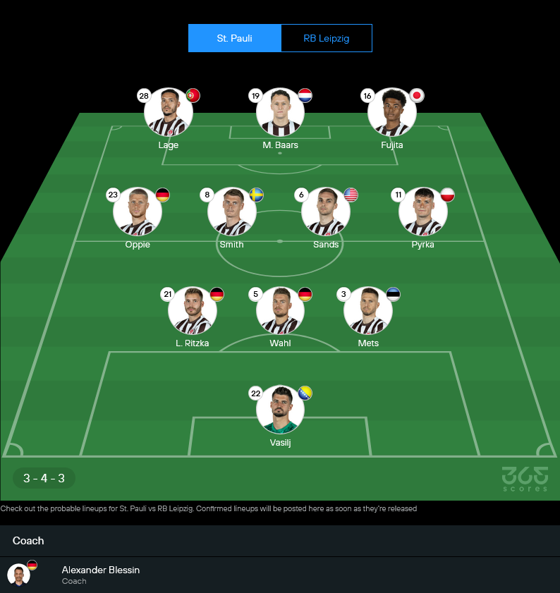 สไตล์การเล่นของซังต์ เพาลี เกมนี้น่าจะเน้นแพ็คแดนกลางให้แน่น ใช้ สมิธ กับ แซนด์ส เป็นตัวเบรกเกมคู่แข่ง ส่วนสามแนวรุกอย่าง ลาเก้, บาร์ส และฟูจิตะ จะคอยฉกฉวยจังหวะสวนกลับหวังปลิดวิญญาณแนวรับไลป์ซิกสักทีเดียวจบ
