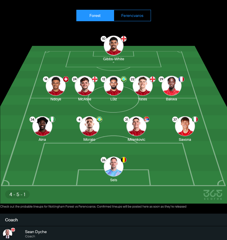จุดสำคัญคือแดนกลาง ฟอเรสต์มีลุยซ์กับเยตส์ที่คุมจังหวะเกมได้ดี บวกกับตัวรุกแถวสองที่สอดขึ้นมายิงได้ตลอด ทำให้แนวรับสามคนของเฟเรนซ์วารอสงานชุกแน่นอน หากทีมจากฮังการีเสียประตูแรกเร็ว เกมจะยิ่งเปิดและเข้าทางเจ้าถิ่นเต็มๆ