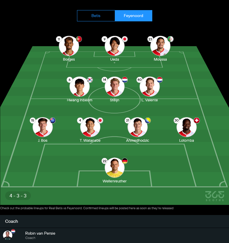 🔮 ฟันธงผลการแข่งขัน : เรอัล เบติส 3-1 เฟเยนูร์ด