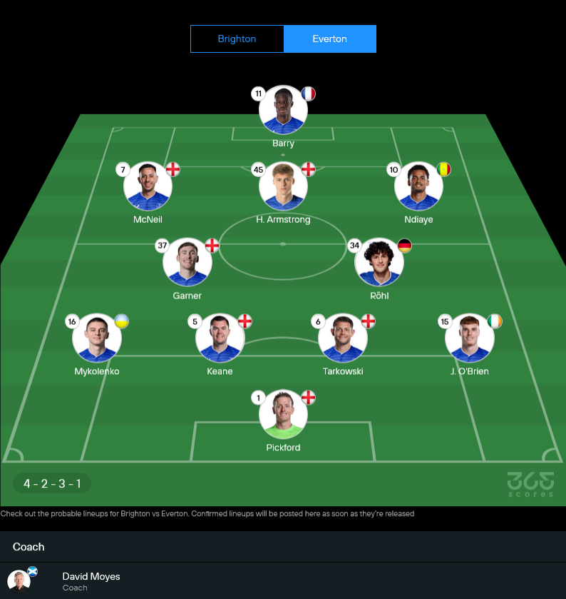 ยังดีที่แนวรุกชุดตัวจริงจากภาพจัดว่าดูดุดันพอตัว ปีกซ้ายเป็น คารุ มิโตมะ ป่วนริมเส้นตามสูตร ตรงกลางใช้ ยูนุส อายาริ คอยเชื่อมเกม และด้านขวาเป็น ปาโบล โกเมซ สนับสนุนหน้าเป้า แดนนี่ เวลเบ็ค ที่สถิติยิง+แอสซิสต์ใส่เอฟเวอร์ตันเยอะสุดในพรีเมียร์ลีกของเจ้าตัว เกมนี้หากได้บอลเยอะๆ มีสิทธิ์ฝากความหวังเรื่องสกอร์ได้สบาย สำหรับเกมรับแผงหลังจากรูปคือ บอสกาญี่ ยืนแบ็กซ้าย, คาดิโอกลู แบ็กขวา คู่เซ็นเตอร์เป็น ลูอิส ดังค์ และ แยน ฟาน เฮคเฆ่ หน้าเสามี บาร์ท แฟร์บรูกเก้น เฝ้าเสา