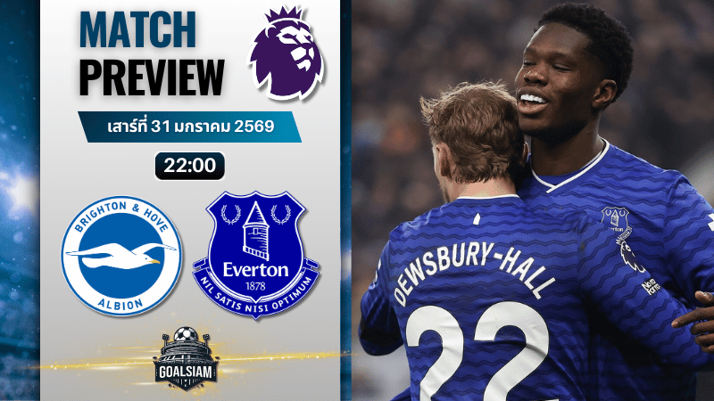 พรีเมียร์ลีก อังกฤษ คู่ดึกโคตรมันส์ ไบรท์ตัน เปิดรังรับ เอฟเวอร์ตัน เกมนี้ไม่ใช่แค่สามแต้มธรรมดา แต่คือการชิงพื้นที่ครึ่งบนตาราง และเปิดทางลุ้นตั๋วยุโรปกันยาวๆ เจ้าถิ่นฟอร์มแผ่วแต่ในบ้านยังโหด ส่วนท็อฟฟี่ของ เดวิด มอยส์ ช่วงหลังนอกบ้านเหนียวแน่นสุดๆ งานนี้สายลุ้น ทีเด็ดบอล มีของให้เล่นกันเพียบ GOALSIAM ขอพาเจาะทุกมุมก่อนกดบิลกันแบบเพลินๆ