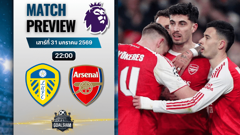 ดูบอลออนไลน์ พรีเมียร์ลีก อังกฤษ ถ่ายทอดสด ลีดส์ ยูไนเต็ด พบกับ อาร์เซนอล 31/1/69 – วิเคราะห์บอลวันนี้ บ้านผลบอล ราคาบอล ทรรศนะบอล ทีเด็ดบอลเต็ง