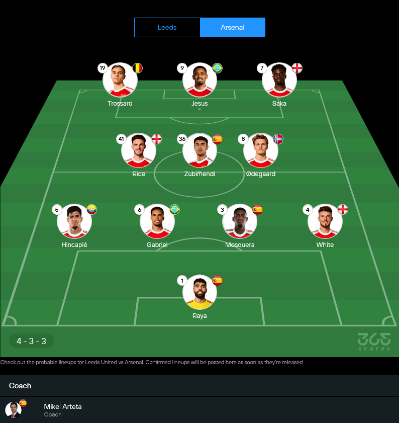 23/08/2025พรีเมียร์ลีกอาร์เซนอล 5-0 ลีดส์ ยูไนเต็ด