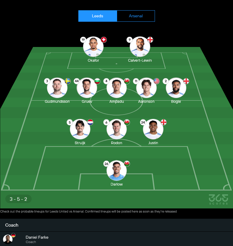 ฝั่งเจ้าบ้านของกุนซือแดเนียล ฟาร์เค่ ยังมีปัญหาตัวเจ็บอยู่พอสมควร ทั้งดาเนียล เจมส์, ยาคา บียอล และกาเบรียล กุดมุนด์สสัน ที่ส่อพลาดลงสนาม ทำให้ตัวเลือกในแนวรับและริมเส้นบางลงเล็กน้อย แต่แผนหลักยังคงใช้ระบบ 3-5-2 เน้นเกมรับแน่นแล้วหาจังหวะสวนกลับเร็วแบบบอลวิ่งสู้ฟัด สไตล์นี้ถ้าเข้าจังหวะถูกวัน สามารถทำให้ปืนใหญ่หัวหมุนได้เหมือนกัน มองภาพรวมแล้วถ้า วิเคราะห์บอล จากขุมกำลังที่เหลือ ก็ยังพอมีทีเด็ดให้ลุ้น