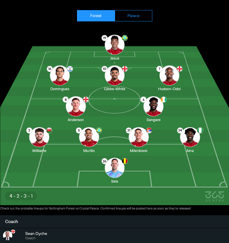 ฟอเรสต์ (4-2-3-1) คาดว่า 11 ตัวแรก พร้อมเรตคะแนนโดยประมาณ