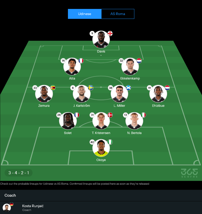 อย่างไรก็ตาม อูดิเนเซ่ในบ้านไม่ใช่หมูให้เชือดง่าย ผลงานล่าสุดบุกไปอัดเวโรน่าถึง 3 ลูก แถมสไตล์เพรสซิงหนักๆ บวกกับเปาที่แจกเหลืองเยอะอย่างซัคคี่ น่าจะทำให้เกมนี้มีช่วงที่โรม่าโดนบีบจนเล่นยากอยู่เหมือนกัน