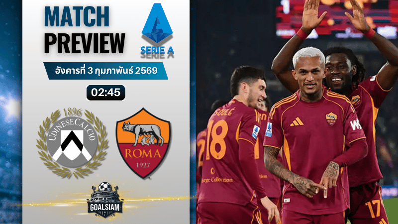 GOALSIAM มองว่าเกมนี้จะเป็นรูปแบบหมาป่าคุมบอลมากกว่า พยายามเจาะผ่านแผงหลังสามตัวของอูดิเนเซ่ ใช้การวิ่งทำทางของซูเล่และเปลเลกรินี่คอยปั่นป่วน พอท้ายเกมเจ้าบ้านเริ่มล้า มีช่องให้มาเลนปิดงาน เชื่อว่าคุณภาพเกมรุกของโรม่ายังเฉียบคมพอเบียดเก็บสามแต้ม แต่สกอร์อาจไม่ขาด เพราะอูดิเนเซ่สวนกลับขึ้นมาลุ้นสกอร์ได้เหมือนกัน