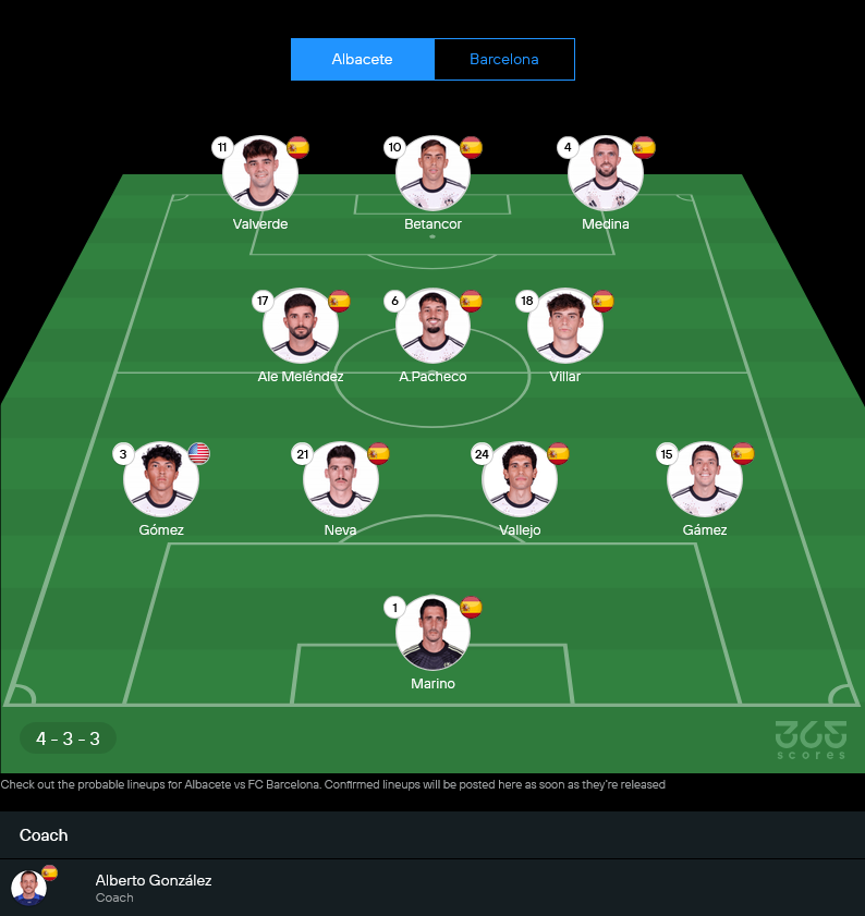 11 ตัวจริงอัลบาเซเต้ (คาดการณ์) พร้อมเรตคะแนน