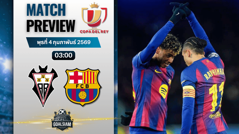 GOALSIAM มองว่าคู่นี้เป็นบอลคนละเกรด แต่จังหวะที่อัลบาเซเต้กำลังมั่นใจหลังเพิ่งหักด่านเรอัล มาดริด แถมเล่นในรัง Estadio Carlos Belmonte เสียงเชียร์จัดหนักแบบนี้ บาร์ซ่าแม้ตัวใหญ่กว่าแต่ถ้าเหลิงเมื่อไหร่มีสะดุดได้เหมือนกัน