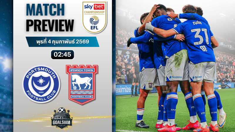ดวลเดือดแฟรทตัน! พอร์ทสมัธเปิดบ้านรับอิปสวิช ศึกหนีตายชนลุ้นเลื่อนชั้น