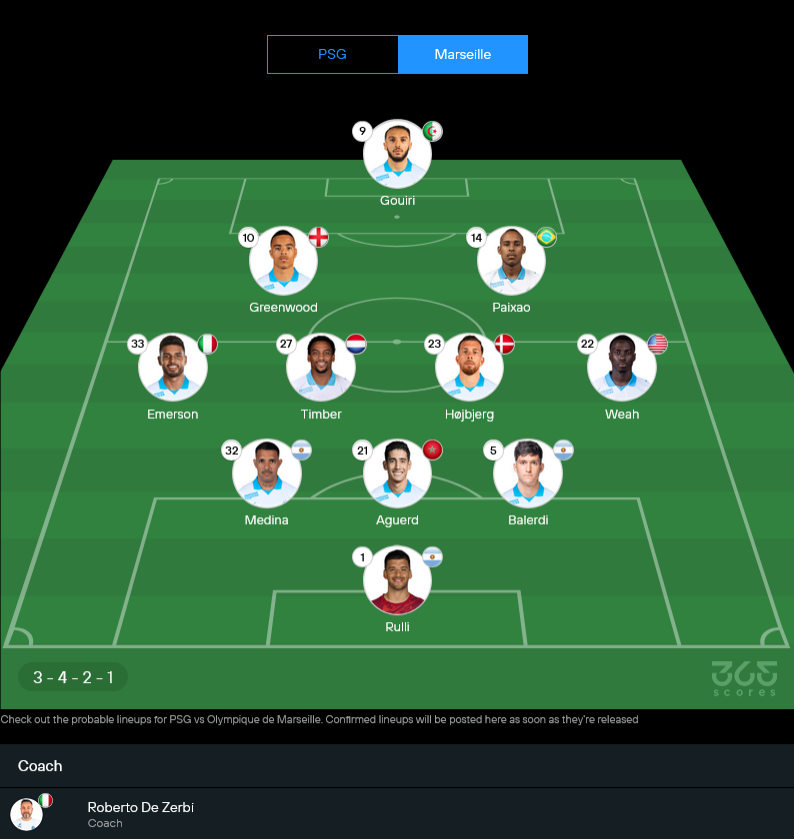 | 28/10/2024 | Ligue 1 | โอลิมปิก มาร์กเซย 0-3 PSG |