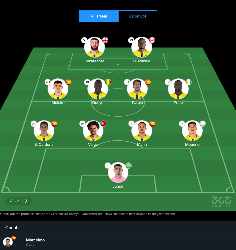 11 ตัวจริงคาดการณ์ บียาร์เรอัล พร้อมเรตคะแนนประเมินจากฟอร์มล่าสุด