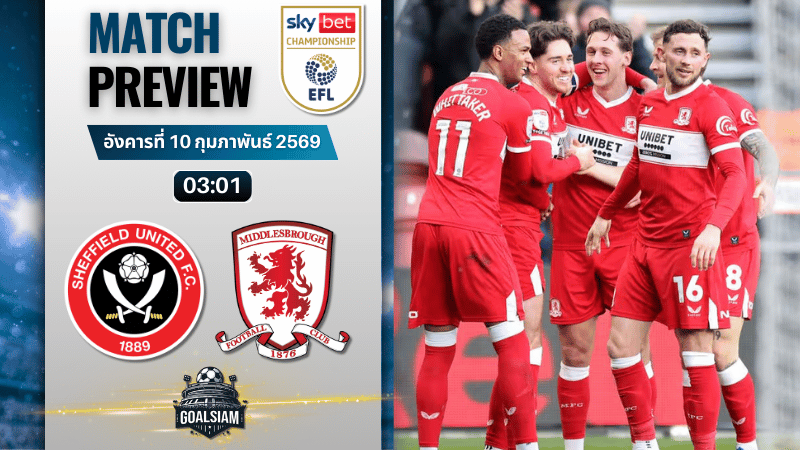 คู่นี้คือคู่ที่สายบอลต้องปักหมุดเลย ศึก แชมเปี้ยนชิพ อังกฤษ คู่ระหว่าง เชฟฟีลด์ ยูไนเต็ด เปิดบ้านรับมือ มิดเดิ้ลสโบรช์ คืนวันอังคารที่ 10 กุมภาพันธ์ 2569 เวลาเช้ามืด 03.01 น. บอลหน้าเสื่อใกล้เคียงกันมาก ฝั่งเจ้าบ้านกำลังกลับมามีลุ้นพื้นที่เพลย์ออฟ ส่วนทีมเยือนฟอร์มโคตรดุ ชนะรวดในลีก 5 เกมติด ใครจะไม่สนใจล่ะจริงไหม