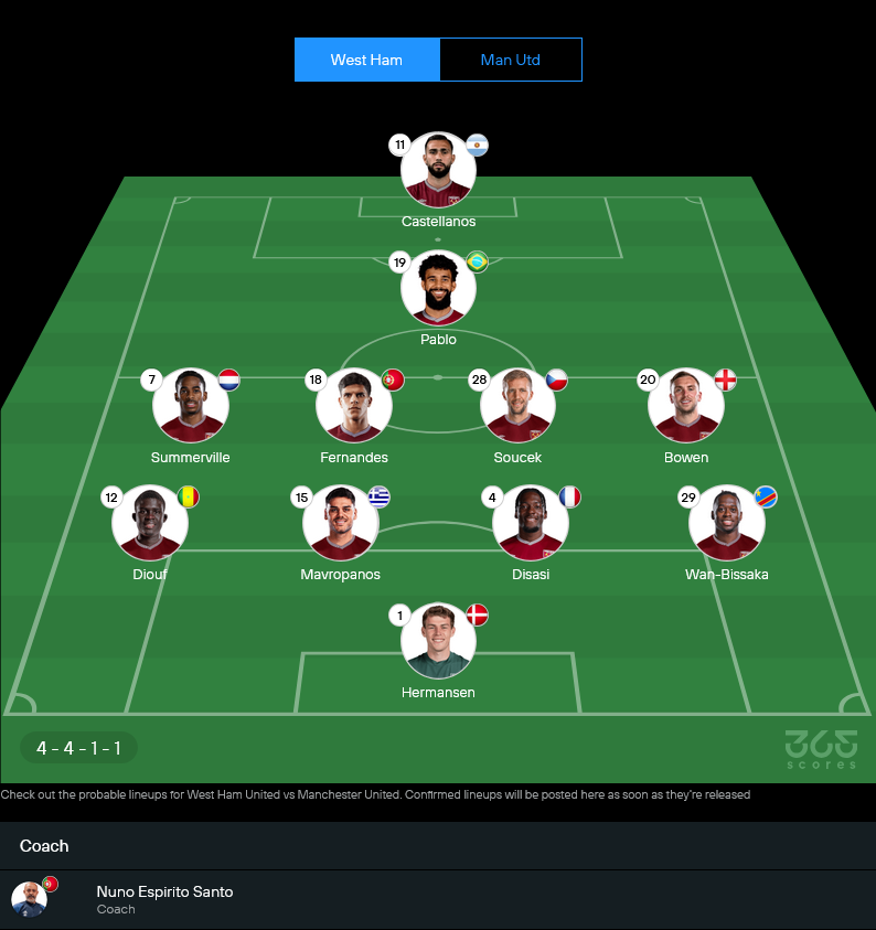 ขุนค้อนยุคนูโน่ กุนซือสายแท็กติกกำลังจัดสมดุลทีมได้ดี แต่ยังมีปัญหาที่ตำแหน่งผู้รักษาประตูเมื่อ ฟาเบียนสกี้ ยังเจ็บยาว ทำให้ เฮอร์มานเซ่น ต้องยึดมือหนึ่งต่อไป ข่าวดีคือโครงทีมหลักยังอยู่กันครบ แดนกลาง ซูเซ็ค จับคู่ มาเตอุส แฟร์นานเดส คอยตัดเกมและวางบอลยาวขึ้นหน้า ส่วนเกมรุกใช้ ปาโบล ยืนหน้าต่ำคอยเชื่อมกับ ตาตี้ กาสเตญานอส โดยบรรดาตัวริมเส้นอย่าง ซัมเมอร์วิลล์ กับ โบเว่น พร้อมลากเลื้อยใส่ฟูลแบ็กผีแดงแบบไม่มีกั๊ก แผนหลักคาดว่าใช้ 4-4-1-1 เน้นรับแน่นกลางสนามแล้วฉวยโอกาสสวนกลับเร็ว เป็นจุดที่สาย วิเคราะห์บอล ชอบมาก เพราะรูปเกมแบบนี้ส่วนใหญ่สกอร์ไม่ต่ำแน่นอน