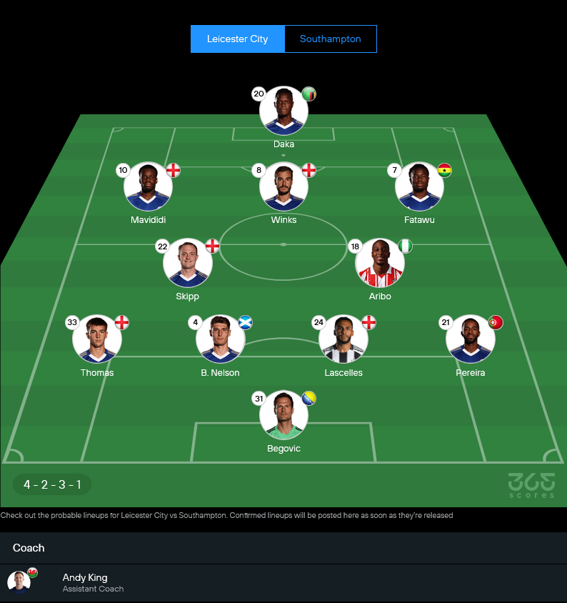 | 16/09/2023 | แชมเปี้ยนชิพ | เซาธ์แฮมป์ตัน 1-4 เลสเตอร์ ซิตี้ |