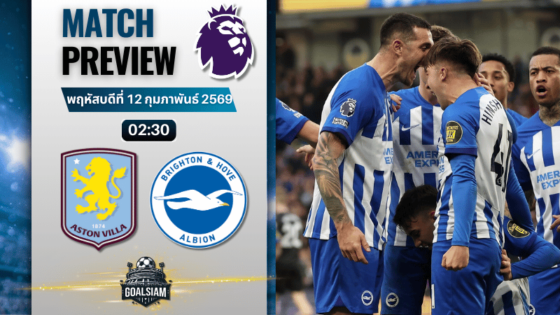 ดูบอลออนไลน์ พรีเมียร์ลีก อังกฤษ ถ่ายทอดสด แอสตัน วิลล่า พบกับ ไบรท์ตัน 11/2/69 – วิเคราะห์บอลวันนี้ บ้านผลบอล ราคาบอล ทรรศนะบอล ทีเด็ดบอลเต็ง