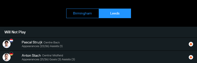 การไม่มีทั้งสเตราย์คและสตัค ส่งผลให้เกมรับและการเปลี่ยนจากรับเป็นรุกของลีดส์ดร็อปลงพอสมควร แต่ยังดีที่แนวรุกตัวหลักอยู่กันครบ ระบบ 5-4-1 ที่ใช้ในเกมบุกแบ่งแต้มเชลซียังทำงานได้ดี และพร้อมถูกนำมาต่อยอดในบอลถ้วยนัดนี้