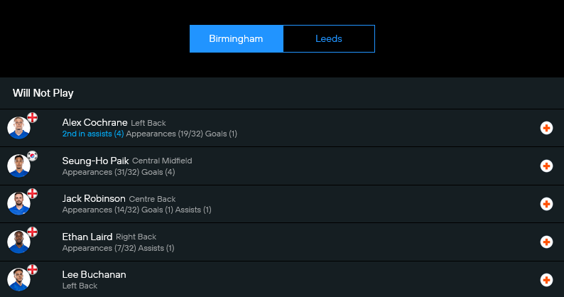 | 12/08/2023 | แชมเปี้ยนชิพ | เบอร์มิงแฮม 1-0 ลีดส์ |