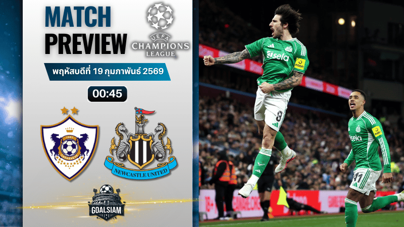 ดูบอลออนไลน์ ยูฟ่า แชมเปี้ยนส์ ลีก ถ่ายทอดสด การาบัค พบกับ นิวคาสเซิ่ล 18/2/69 – วิเคราะห์บอลวันนี้ บ้านผลบอล ราคาบอล ทรรศนะบอล ทีเด็ดบอลเต็ง