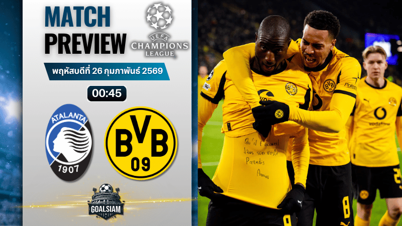 18/02/26ยูฟ่า แชมเปี้ยนส์ ลีกดอร์ทมุนด์ ชนะ อตาลันต้า 2-0
