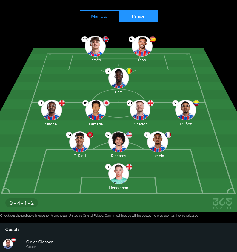 11 ตัวจริงคาดการณ์ คริสตัล พาเลซ (3-4-1-2)
