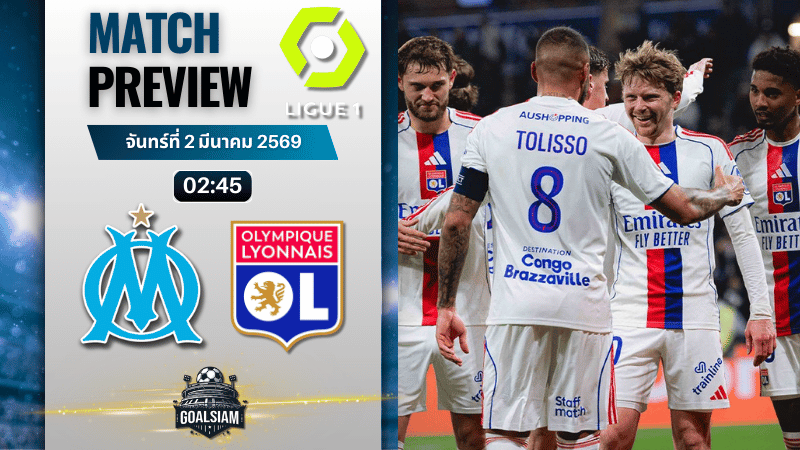 GOALSIAM บอกเลยคู่นี้มันเป็นเกมที่ดูชื่อก็รู้แล้วว่าไฟลุก โอลิมปิก มาร์กเซย ได้กลับมาเล่นในสต๊าด เวโลโดรม ต่อหน้าแฟนตัวเองที่พร้อมกดดันคู่แข่งทุกจังหวะ แต่ปัญหาคือช่วงหลังฟอร์มในลีกมันแกว่ง แถมเพิ่งโดนเปแอสเชไล่ยำ 5-0 ยังเจ็บคาใจไม่หาย ขณะที่ โอลิมปิก ลียง มาแบบทีมกำลังมั่นใจ ชนะรัวๆ ก่อนสะดุดแพ้สตราส์บูร์กนัดล่าสุด เกมนี้เลยเหมือนบททดสอบว่าลียงจะหลุดยาวไหม หรือจะกลับมาเดินหน้าล่าตั๋วใหญ่ต่อได้