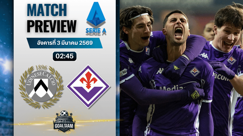 GOALSIAM บอกเลยคู่นี้มันไม่ใช่เกม “เตะไปงั้นๆ” นะ อูดิเนเซ่อยู่โซนกลางตารางก็จริง แต่ช่วงหลังแกว่งจัด แพ้ลีกติดๆ กันจนเริ่มมีกลิ่นลน ขณะที่ฟิออเรนติน่าเพิ่งผ่านเกมยุโรปแบบใช้พลังชีวิตสุดๆ ต่อเวลา 120 นาทีมาแล้ว ความล้าต้องมี แต่แรงฮึดก็มาเหมือนกัน เพราะสถานการณ์ในลีกยังต้องเก็บแต้มหนีโซนอันตรายให้ได้