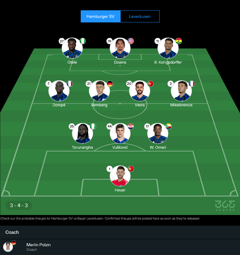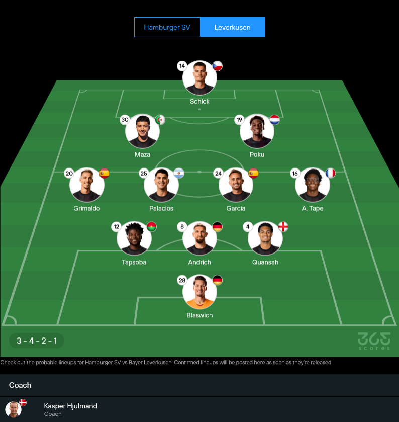 เจ้าถิ่นมีตัวหายพอสมควร กลุ่มเจ็บยังเป็นหน้าเดิม ทั้ง อเล็กซานเดอร์ รอสซิ่ง-เลเลซิต, อัลเบิร์ต กรอนแบค และ นิโกลัส คาปัลโด้ แถมมีตัวแบนเพิ่มคือ มิโร มูไฮม์ ทำให้เกมริมเส้นบางจังหวะอาจต้องปรับวิธีเล่น แต่ภาพรวมยังยึดชุดหลักในระบบ 3-4-3 ที่เน้นสปีดเกมสวนและความจัดจ้านของสามประสานแดนหน้า ซึ่งสาย วิเคราะห์บอล จะมองเลยว่า หากฮัมบูร์กจะมีแต้ม ต้องเปลี่ยนจังหวะจากรับเป็นรุกให้ไว และอย่าเสียบอลกลางสนามง่ายๆ