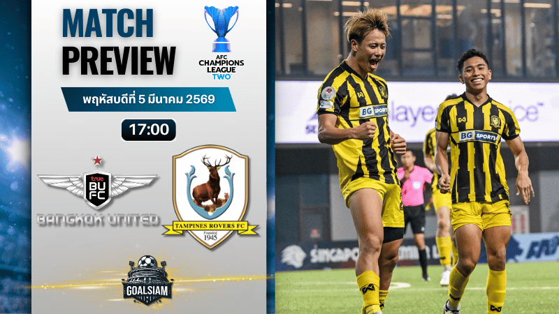GOALSIAM บอกเลยคู่นี้มันไม่ใช่บอลที่ดูผ่านๆแล้วจบ เพราะนี่คือเกมที่ “มีประวัติ” และมีความแค้นติดปลายสตั๊ดกันอยู่พอตัว ระหว่าง ทรู แบงค็อก ยูไนเต็ด กับ แทมปิเนส โรเวอร์ส ใน AFC แชมเปี้ยนส์ ลีก ทู จังหวะมันได้ บรรยากาศมันถึง แถมสถิติมันชวนให้คิดหนักว่าเกมนี้จะออกหน้าไหน แบงค็อกทรงบอลในรายการนี้ไม่ได้แย่ ยิงได้เรื่อยๆ ครองบอลเยอะเป็นนิสัย แต่แทมปิเนสมาแนว “สวนแล้วหาย” ยิงคมแบบไม่ต้องครองเยอะ แถมตัวรุกเรตติ้งเด่นๆเพียบ ถ้าคุณกำลังหา ทีเด็ดบอล ที่มีทั้งทรงเกมและเรื่องราวให้ตาม เกมนี้ตอบโจทย์แน่นอน
