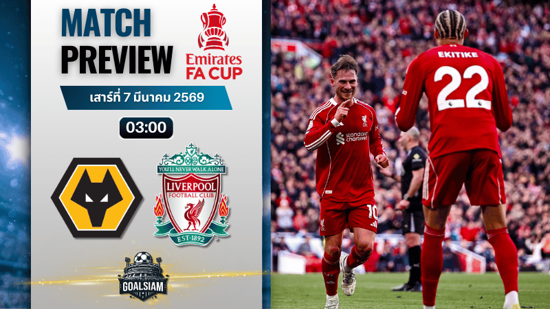 GOALSIAM บอกเลยคู่นี้มันไม่ใช่แค่บอลถ้วยธรรมดา เพราะเพิ่งซัดกันมาในลีกสดๆร้อนๆ และจบแบบวูล์ฟส์ฉกแต้มไปหน้าตาเฉย 2-1 คราวนี้ย้ายเวทีมาที่เอฟเอ คัพ บรรยากาศมันจะตึงกว่าเดิมหลายเท่า เจ้าบ้านกำลังมั่นใจ เกมรับแน่น เล่นเป็นระบบ แถมจังหวะสวนกลับนี่มีเขี้ยว ส่วนทีมเยือนลิเวอร์พูลก็ชัดเจนว่าไม่อยากเสียรอบสองติดให้ทีมเดิมในระยะเวลาใกล้กัน แบบนี้แรงจูงใจมาเต็มแน่ ใครกำลังหา ทีเด็ดบอล แบบได้ลุ้นทุกวินาที คู่นี้คือของจริง